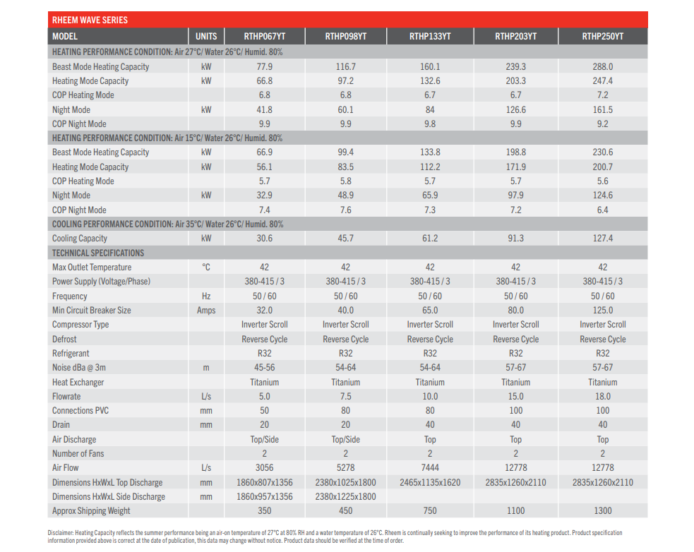 RTHP098 Wave Series - Commercial Pool Inverter Heat Pump
